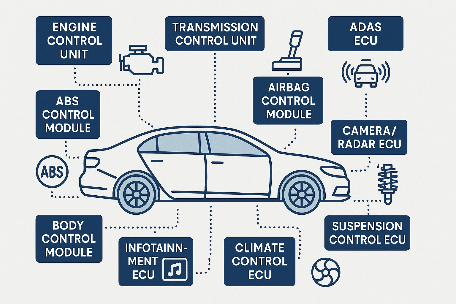 ECUs : Various ECUs such as Brakes, Steering Column, Central Control Unit, ADAS, HVAC, Instrument Cluster, VCU, BMS, MCU and Body ECUs